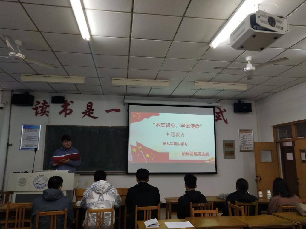 kaiyun开云官方网站信息管理党支部于2019年11月21日在逸夫楼A510进行了“不忘初心,牢记使命”主题教育第九次集体学习。