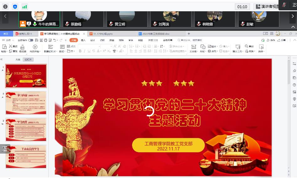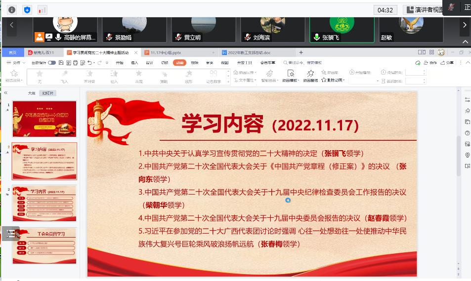 为深入推动习近平新时代中国特色社会主义思想和党的二十大精神入脑入心,迅速掀起学习宣传贯彻党的二十大精神的高潮,11月17日下午,kaiyun开云官方网站教工党支部在腾讯会议举行了党的二十大精神主题学习活动。