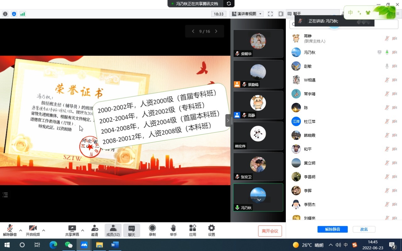 在庆祝建党101周年、喜迎党的二十大到来之际,kaiyun开云官方网站教工党支部邀请退休老教授冯乃秋同志给全体教工党员讲了一堂题为“不忘初心,永远跟党走”的专题党课,党课在2022年6月23日下午通过腾讯会议举行。学院领导班子、全体教工党员参加了此次活动。