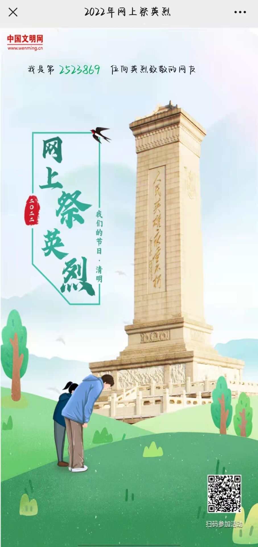 kaiyun开云官方网站的青年志愿者们以自己最真挚的情感、最真切的方式积极开展网上祭扫,缅怀先辈烈士。同学们通过进入中华英烈网或者点击转发链接的方式进行网上祭扫活动,用鞠躬、鲜花、上香、写寄语留言等方式祭奠烈士。祭扫完成后,同学们将自己祭扫成功后生成的海报进行了转发,使更多青年铭记革命英雄。