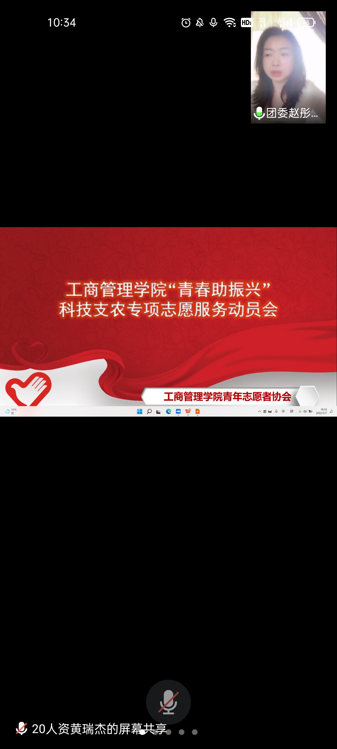 线上动员会由团委赵彤老师主持并讲解此次志愿活动的时间、服务对象、服务方式、服务内容以及奖励机制等。由学校科技专家统一宣传并提供农业、畜牧业以及产业等的相关技术,技术的宣传和法律援助等方面资料将由志愿者分类整理后,通过微信群开始“云帮扶”活动。志愿者们可以对家乡所在务农的村民宣传相关技术、经营理念、安全生产以及疾病预防等知识并形成一定的调研实践成果。发挥志愿者科技帮扶桥梁纽带作用,收集相关问题并进行整理反馈至专家团队,专家将会进行指导并解答相关的问题。