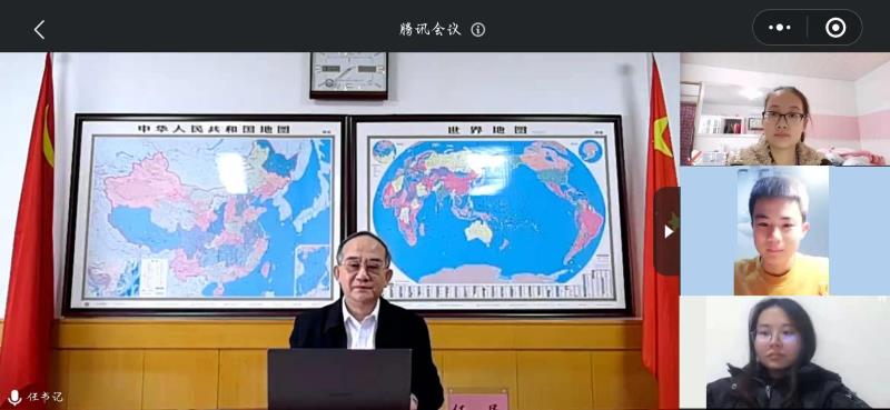 任民围绕当前国内省内疫情防控总体形势,积极做好个人防护,坚持居家线上学习,积极调整心理状态,坚定理想信念、践行使命担当,增强纪律观念、提升安全意识等六个方面,对学生进行疫情防控宣传教育、心理健康教育、日常思想政治教育和安全教育。任民强调每个人要当好自己健康的第一责任人,养成良好的卫生健康习惯。谈到学习之道,任民指出,要充分利用资源,博览群书,广泛涉猎,不断充实提高自己。