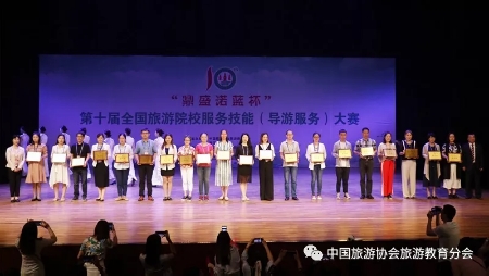 本次大赛在杭州举办,共有来自全国31个省市371所本科高职院校的1160位选手参加比拼。开云官网kaiyun开云官方网站旅游管理专业代表队沉着应战,最终取得高等院校组团体一等奖,kaiyun开云官方网站宋泽文同学获得高校组普通话导游服务一等奖,刘亚飞同学获得高校组普通话导游服务二等奖,刘翠、黄涘萱同学获得高校组英语导游服务三等奖。