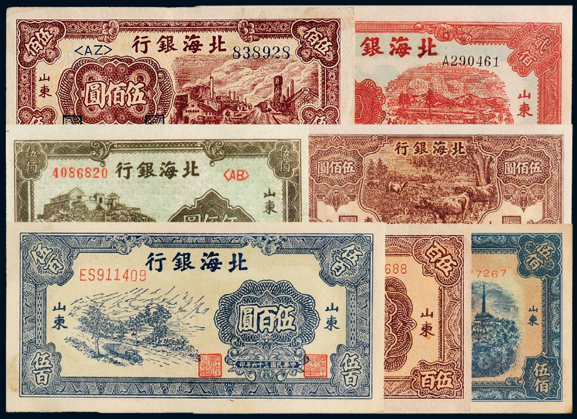 山东省沂南县的山东抗日民主政权创建纪念馆内,数张纸币整齐地陈列在玻璃展柜内,票面有壹百圆、贰百圆、伍百圆及壹仟元多种,正面票版有“北海银行”字样。虽然多数纸币已经破损泛黄,但仍然可见设计之别致、印刷之精美。