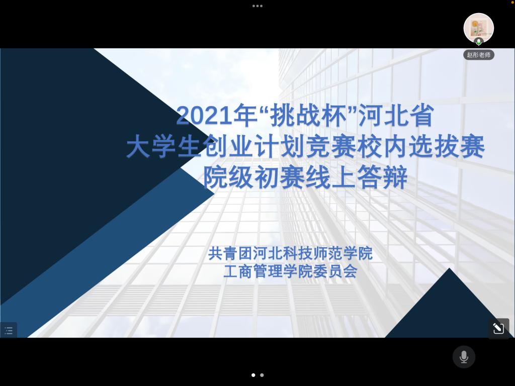 为了进一步培养大学生的科学精神、创新意识和实践能力,2021年12月27日,kaiyun开云官方网站召开“挑战杯”河北省大学生创业计划竞赛校内选拔赛院级初赛线上答辩会。