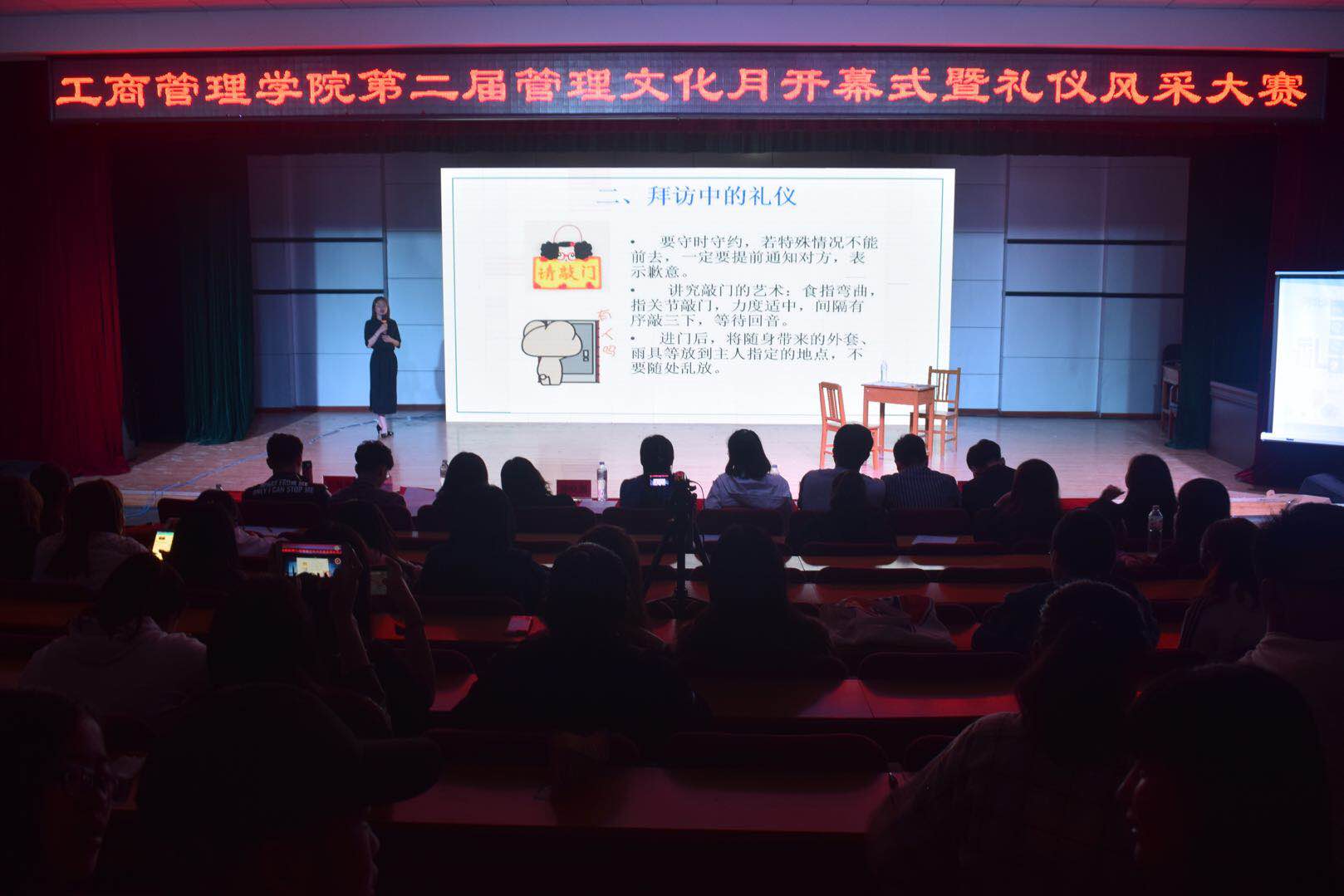 2018年5月8日,kaiyun开云官方网站于多功能厅举办第二届管理文化月开幕式暨礼仪风采大赛决赛,学院领导、学工办全体老师及300余名学生参加了此次活动。