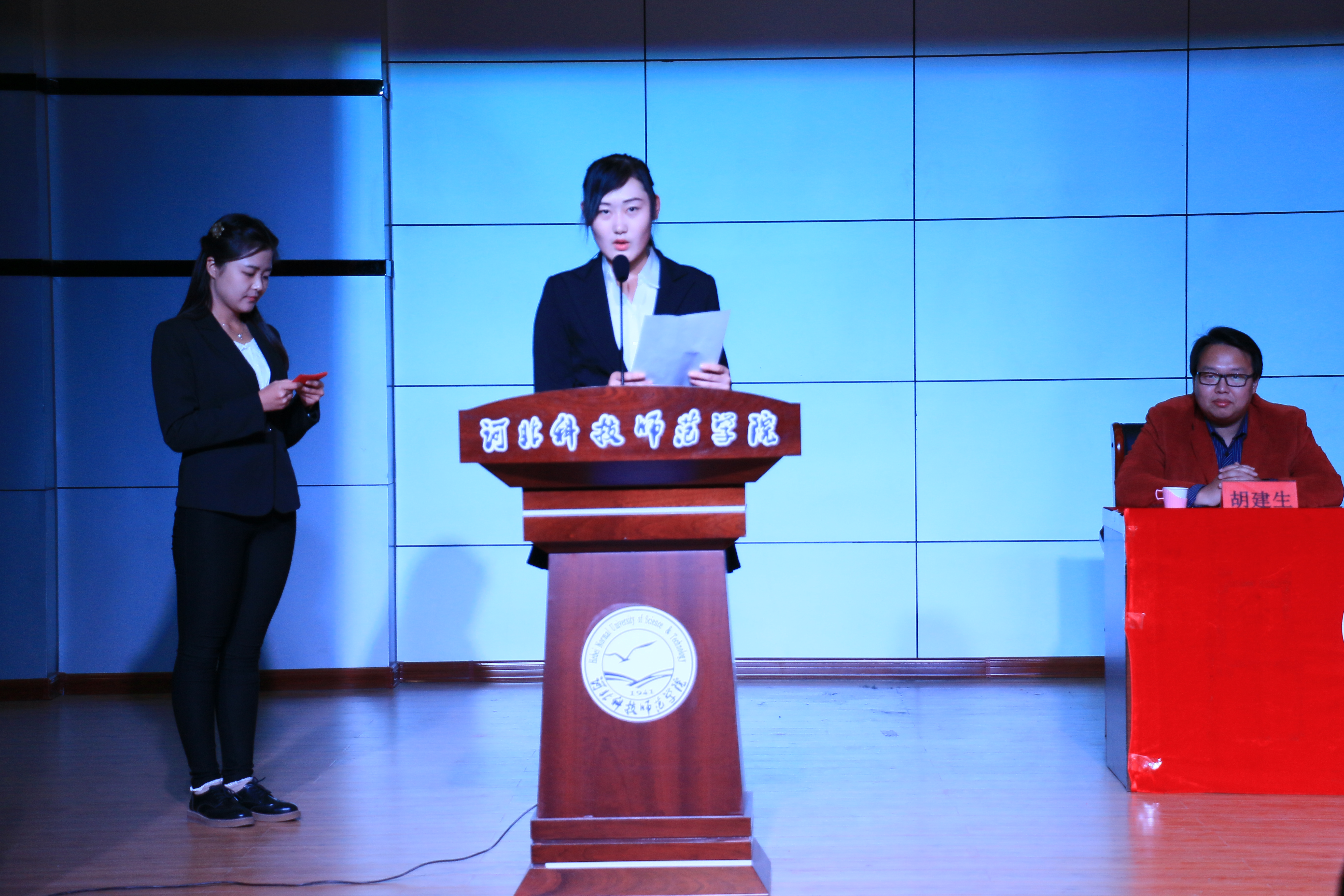 仪式开始了,首先全体起立奏唱国歌,接下来由2014届工商学生会主席李苑发表讲话,工作三年,满怀对学生会的感情,并提出了对下一届学生会成员的要求和期盼,打造精品工商。接下来韩老师和胡老师为前一任学生会主席们颁发纪念品,带着的不仅是纪念品更是老师和同学们的热情和期待!接着李强华教授和韩晓霞老师分别公布新一届学生会成员聘任名单,由李强华教授为各个主席们颁发聘书,胡建生老师宣布学生会各个部门的部长们和主席团下属机构负责人名单,由韩老师和胡老师为部长们颁发聘任证书,新一届成员们面带笑容光荣上岗,代表的是一种责任!接着由王泽强主席讲话,言辞坚定,提出了对工商学生会的工作规划和工作要求,为打造精品工商不懈努力!最后由刘恩峰教授做贺词,此次仪式圆满结束。