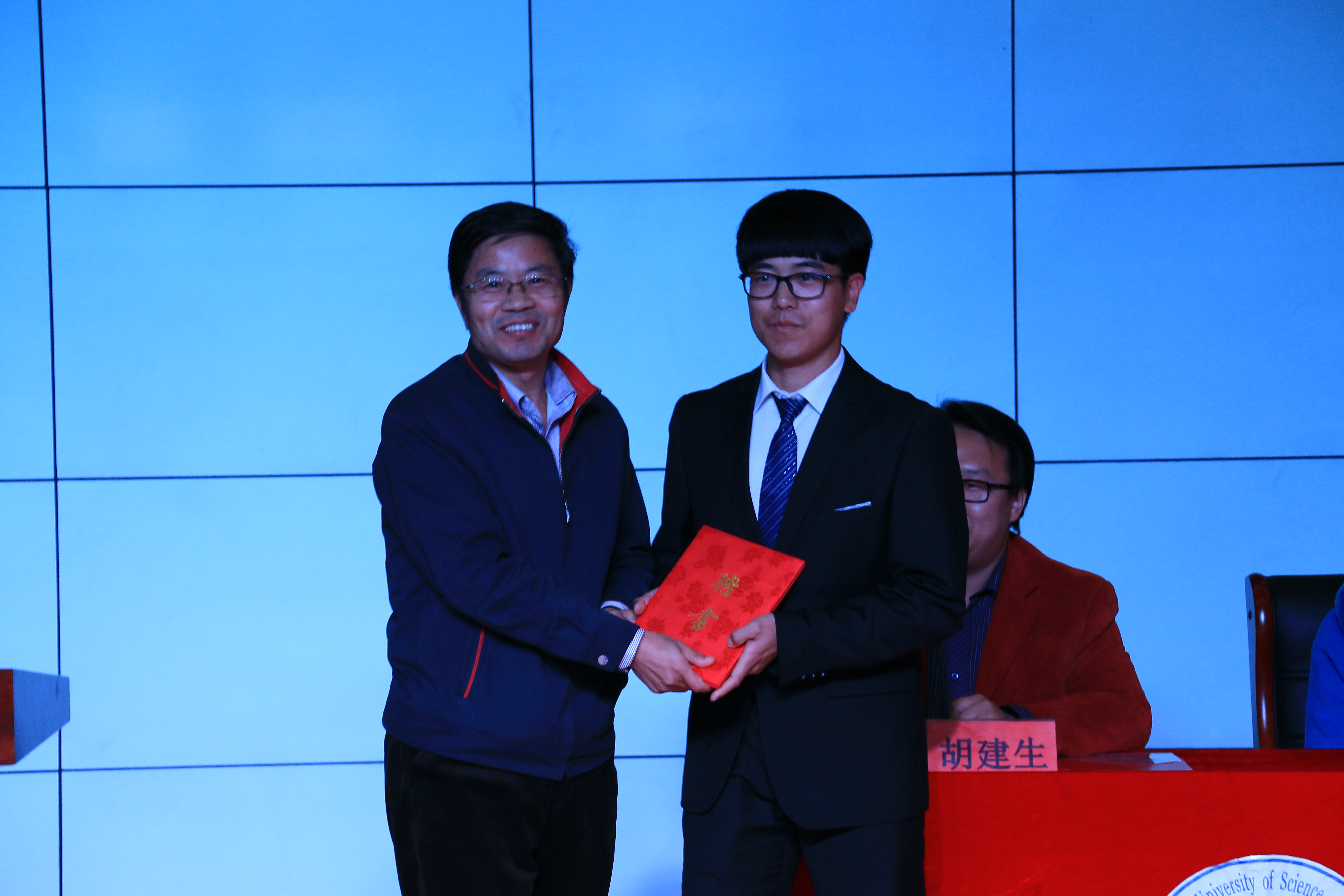 党委书记刘恩峰为2015届工商学生会主席王泽强颁发聘书